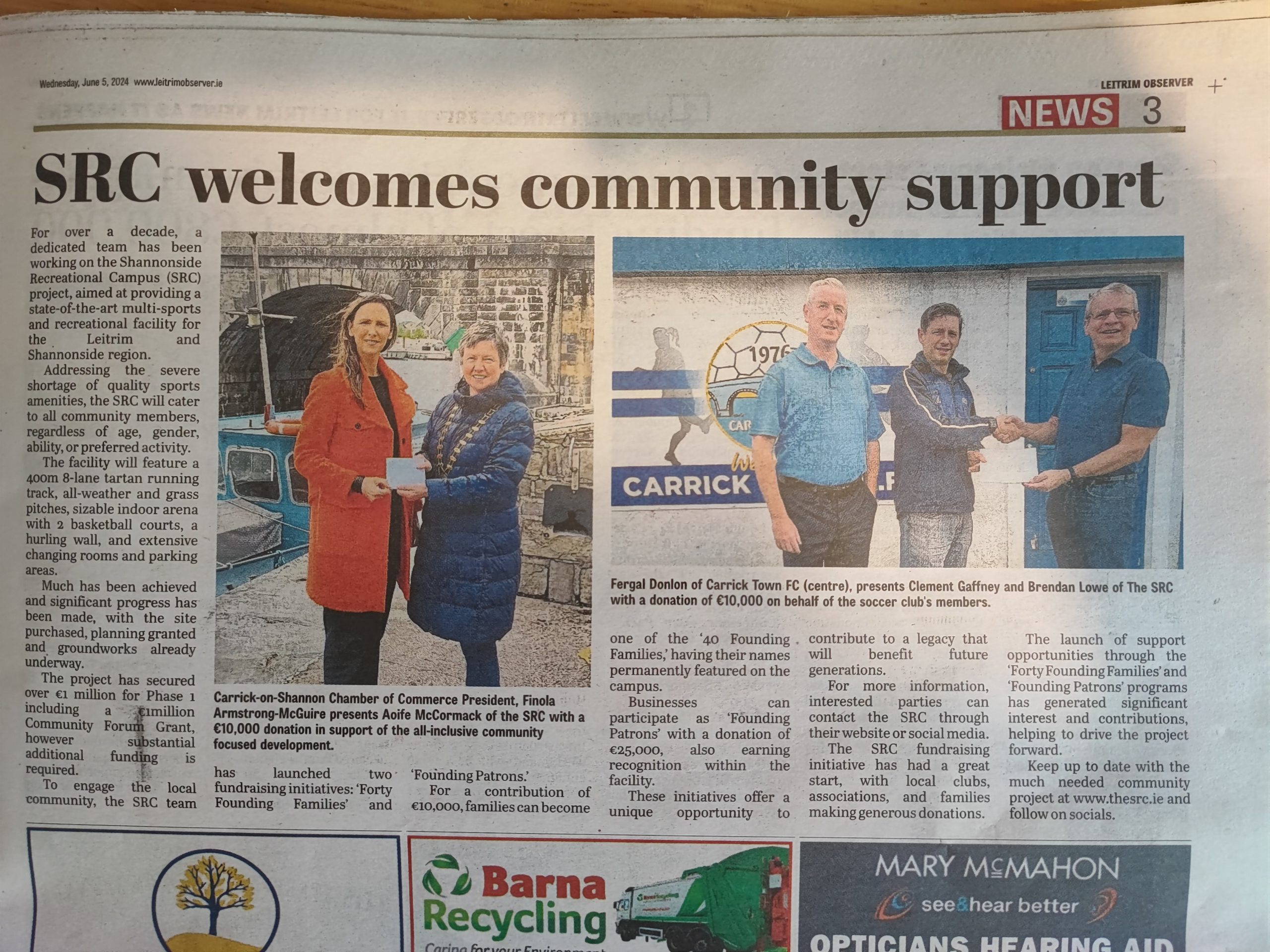 The project has secured over €1 million for Phase 1 including a €1million Community Forum Grant, however substantial additional funding is required. To engage the local community, the SRC team has launched two fundraising initiatives: ‘Forty Founding Families’ and ‘Founding Patrons.’ For a contribution of €10,000, families can become one of the ‘40 Founding Families,’ having their names permanently featured on the campus. Businesses can participate as ‘Founding Patrons’ with a donation of €25,000, also earning recognition within the facility. These initiatives offer a unique opportunity to contribute to a legacy that will benefit future generations. For more information, interested parties can contact the SRC through their website or social media.